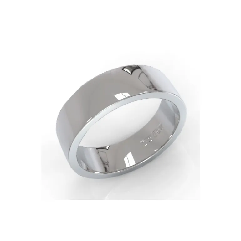 Ringen har en lätt rundad profil och vi kan tillverka den i olika bredder i vanligt rödguld, vitguld eller silver.