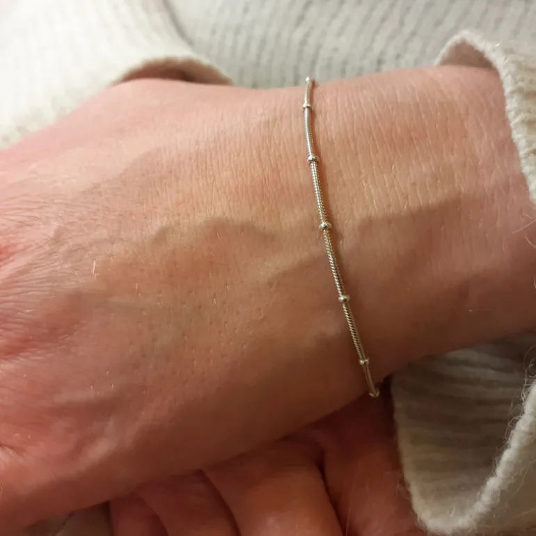Silverarmband, armband med rund ormlänk som kedja med kulor som dekoration.