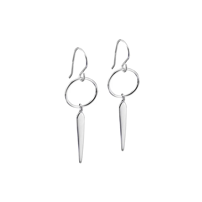 Spike, hängande silverörhängen på krok med ring och pilspets.