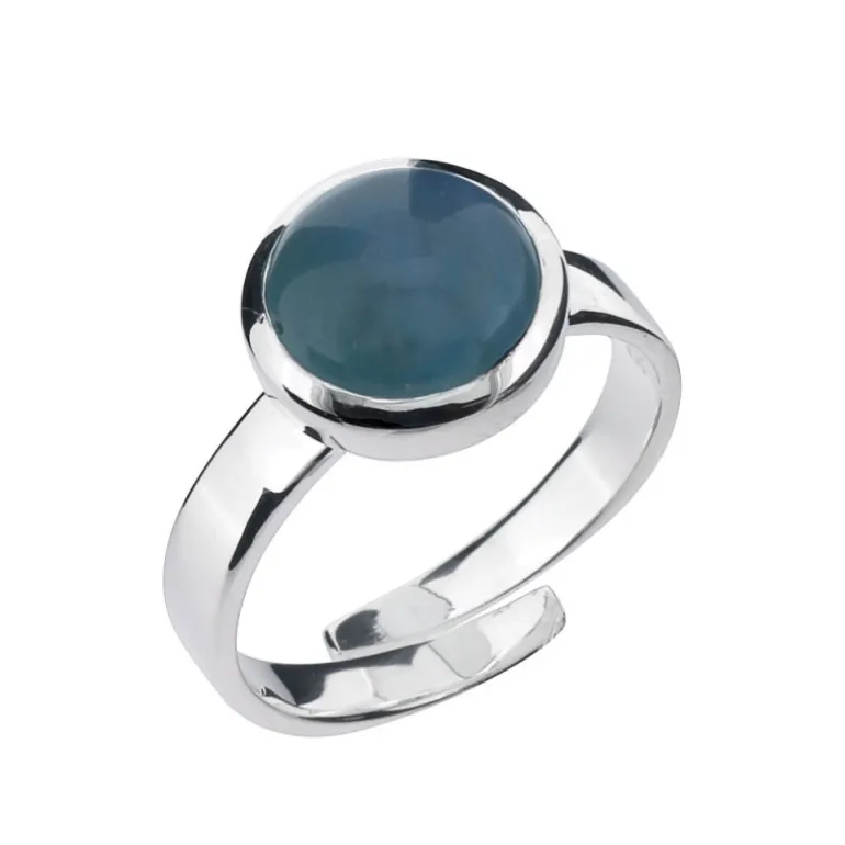 Silverring med blå sten, berslaggsten, infattad i slät kant i äkta silver.