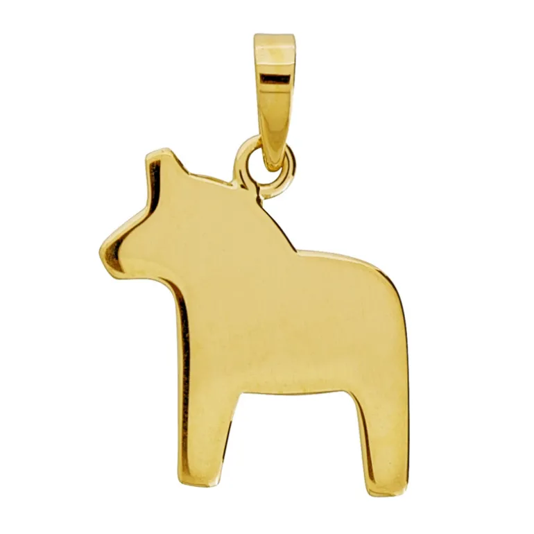 Dalahäst, slät blank platt häst som smycke och berlock tillverkad i guldförgyllt äkta silver 925.