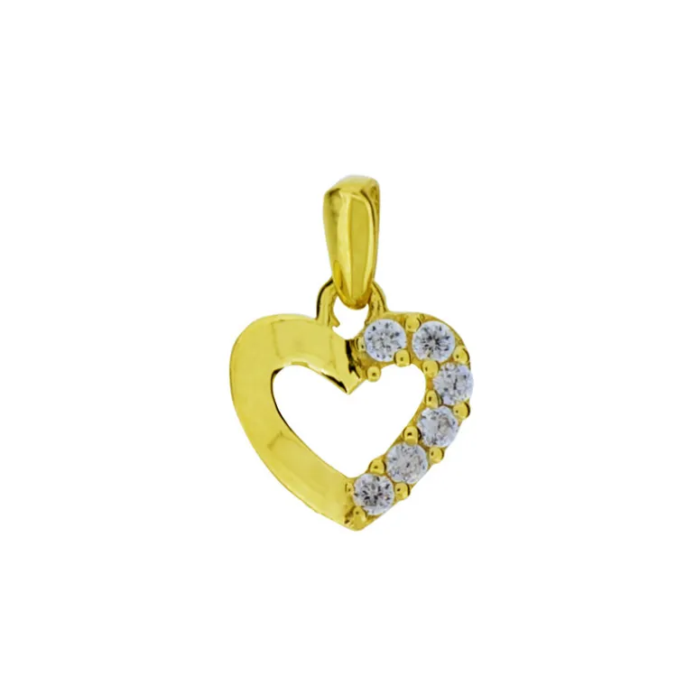 Smycke med hjärta i guld med vita gnistrande cubik zirkoner på ena sidan.