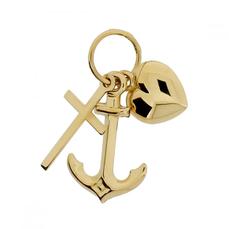 Smycke Tro Hopp och Kärlek, berlock med ankare, kors och hjärta i äkta guld 18 karat.