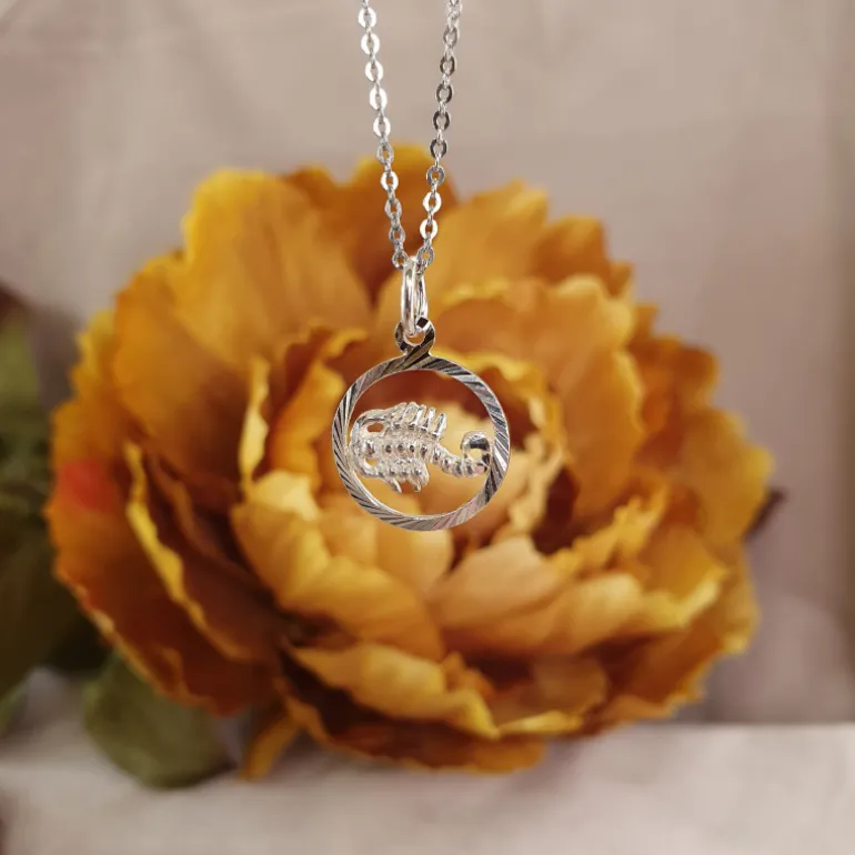Vårt Stjärntecken skorpion som halsband i äkta silver 925, inom astrologin för dig som är född mellan 24 oktober och 22 november. Halsbandet med stjärntecknet vågen är ett skirt och vackert smycke med glittrande fasetter på sidorna och silverkedja modell ankar.