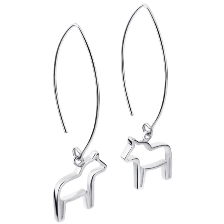 Stora örhängen med dalahästar i äkta silver 925 på stora krokar.