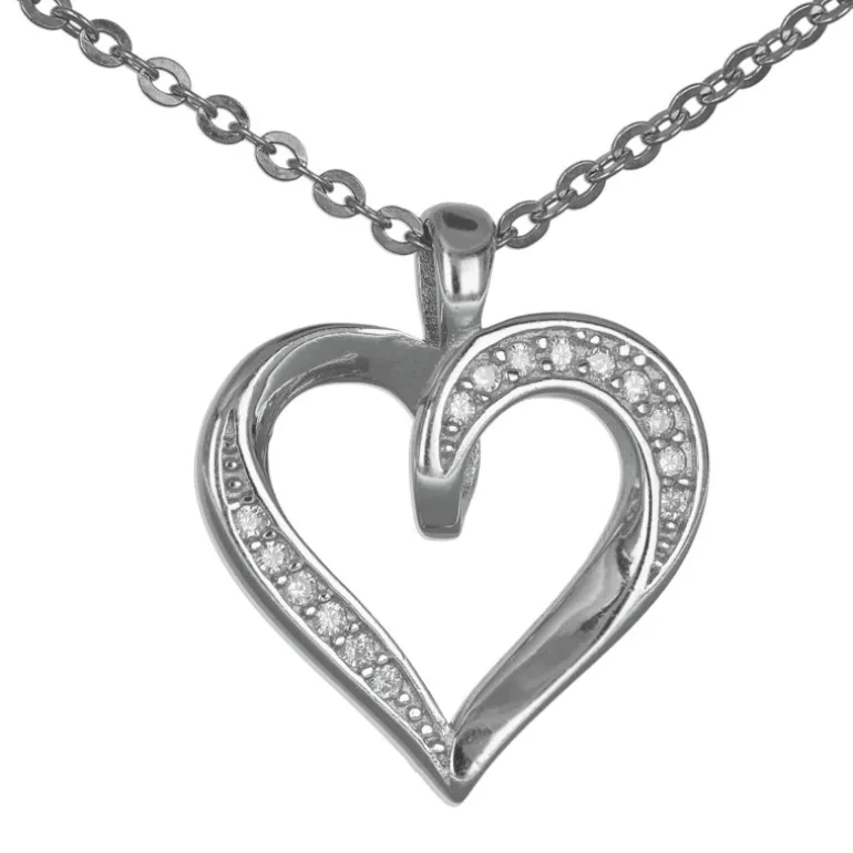 Sweetheart, halsband med hjärta och kedja i äkta silver. Snyggt lite vridet hjärta med vita gnistrande stenar, cubik zirkoner. Höjd på smycket inklusive ögla 17 mm, bredd 15 mm.