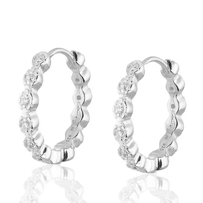 Time to glow, hoops creoler från Carolina Gynning med rombformat mönster och vita stenar. Material äkta silver och vita cubik zirkoner.