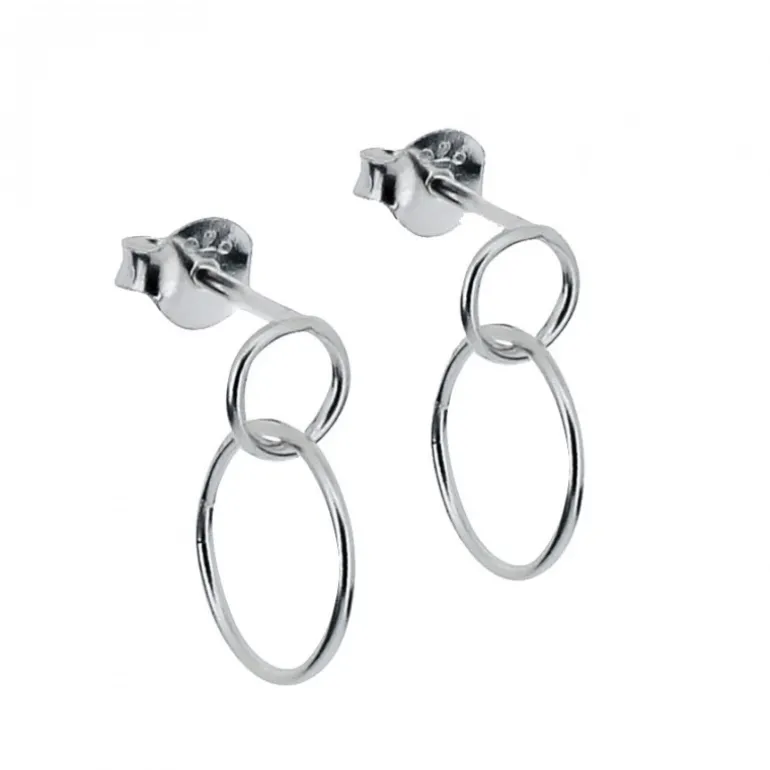 Hängande silverörhängen med tunna sammankopplade ringar, äkta silver 925.