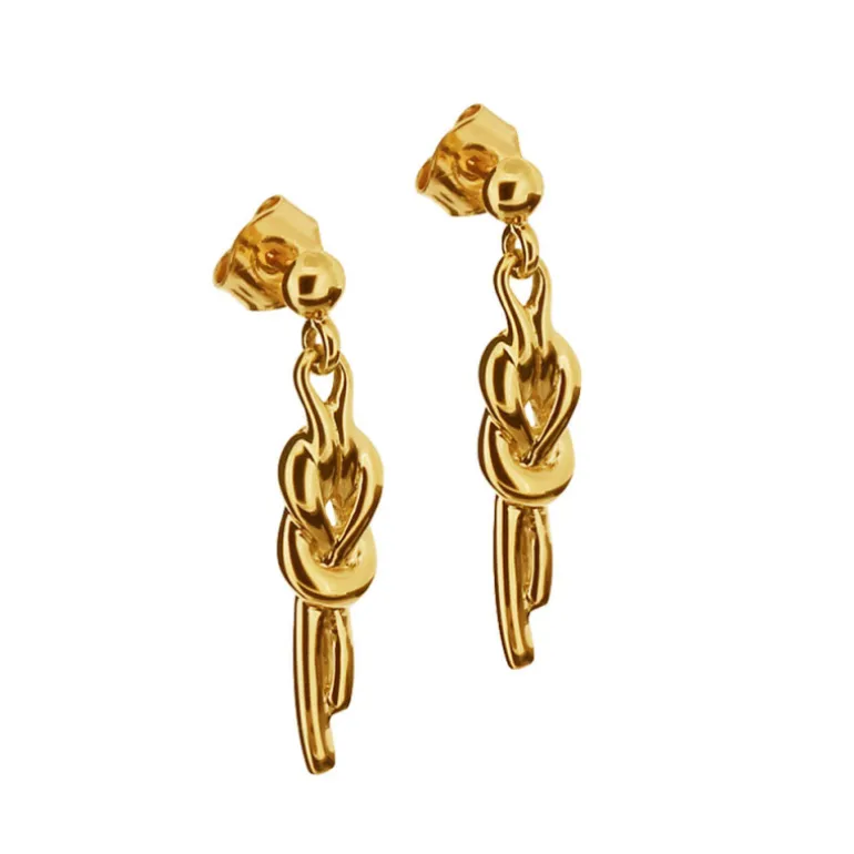 Vänskapsknut, hänganden örhängen med knutar i äkta guld 18 karat. Längd 26 mm.
