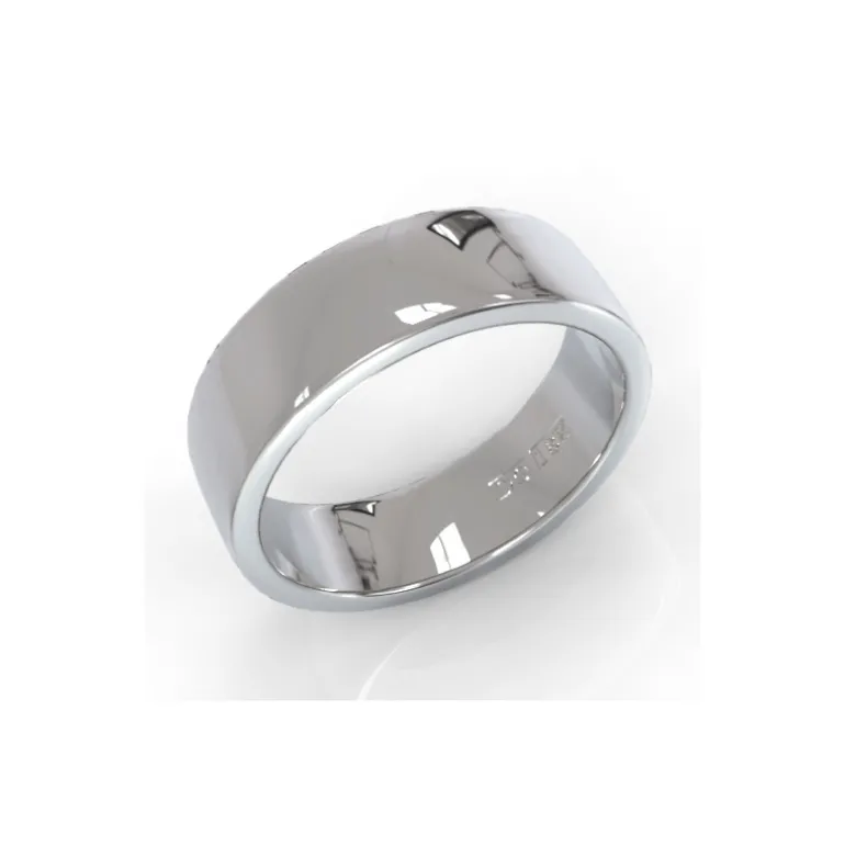 Ringen har en lätt rundad profil med rundad kant och vi kan tillverka den i olika bredder i vanligt rödguld, vitguld eller silver.