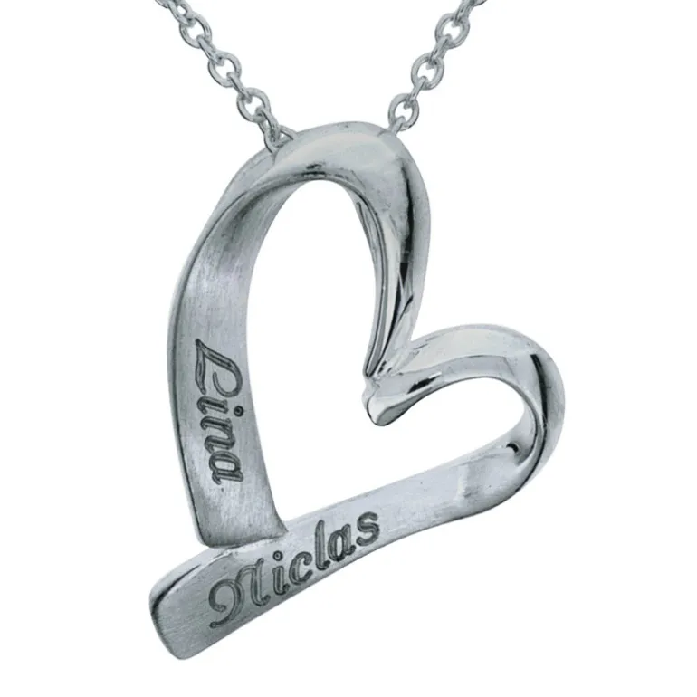 Halsband med matterat hjärta med kedja, gravyr ingår. Äkta silver 925.
