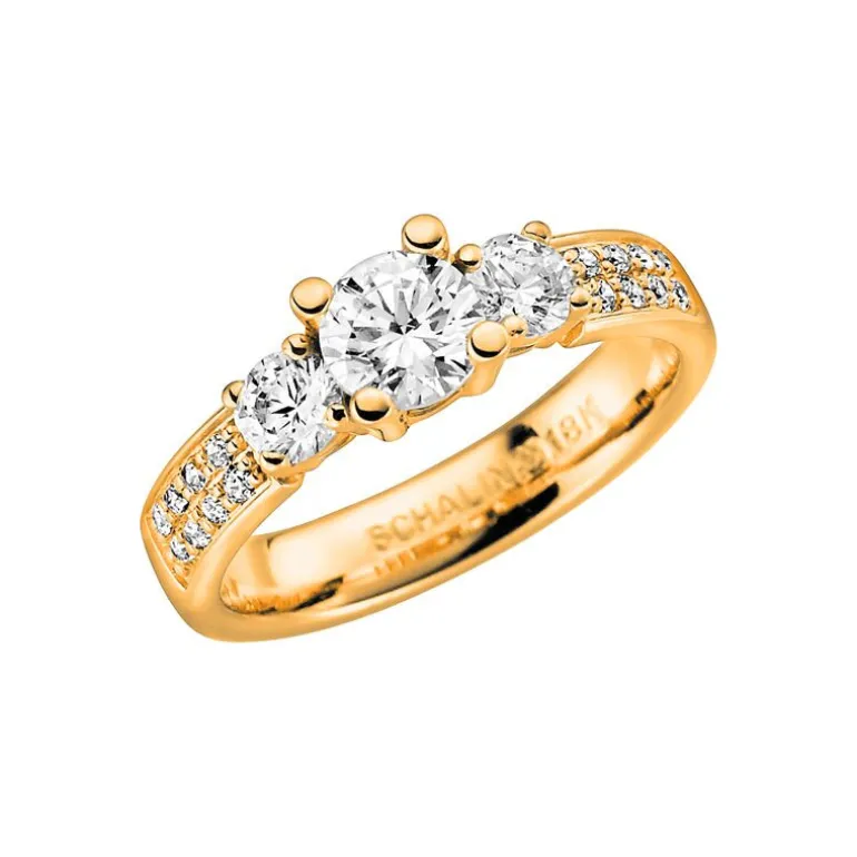 Carmen, förlovningsring eller vigselring. Guldring med både stora och små diamanter 14 karat guld från Schalins ringar.