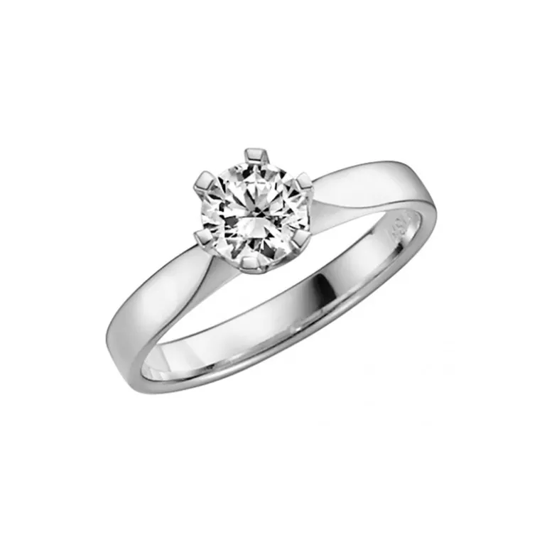 Donau förlovningsring eller vigselring, solitär diamantring med en briljant. Vitguldsring 14 karat med diamant 0,75 ct från Schalins ringar i klassisk prinsessmodell. Gravyr ingår. 5-7 dagars leveranstid.