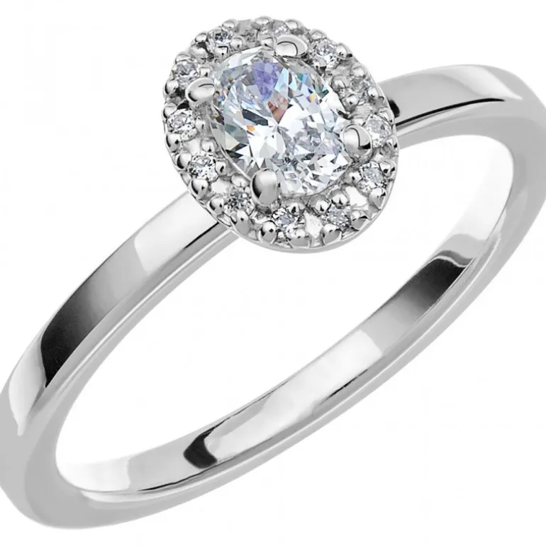 Haloring i 14 karat vitguld med diamanter total carat 0,39 ct. Oval diamant i mitten med flera små diamanter runt om. Gravyr ingår.