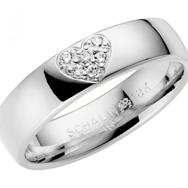 Vitguldsring 14 karat med hjärta av diamanter, Nova från Schalins ringar. Gravyr ingår. 5-7 dagars leveranstid.