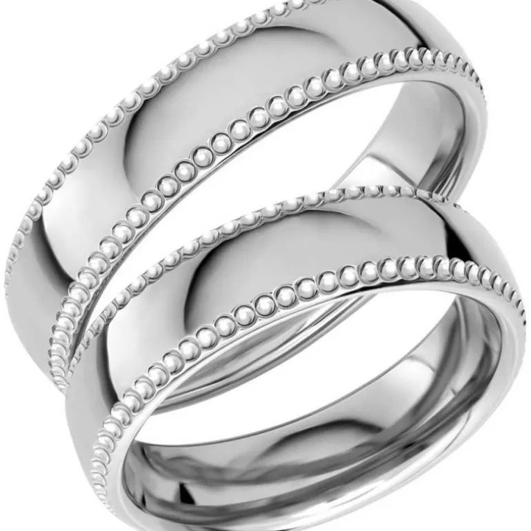 Förlovningsring och vigselring med kulmönster, mönstrad guldring i vitguld 14 karat tillverkad av Schalins ringar. Ny modell med mönster som kulor som finns i flera olika bredder.