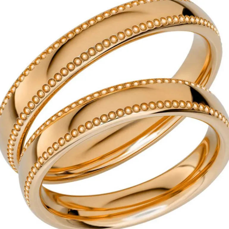 Reflection 05, ny mönstrad ring med kulmönster som förlovningsring och vigselring. Guldring tillverkad av Schalins ringar i äkta guld 14 karat.