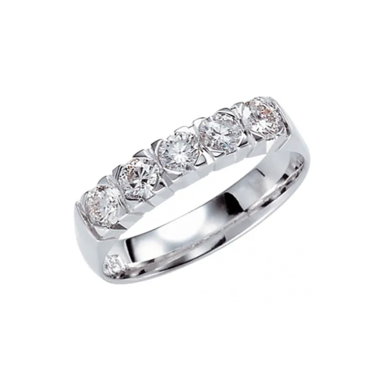 Klassisk alliansring med flera diamanter från Schalins ringar. Välj om ni vill ha ringen i vitguld eller vanligt rödguldsfärg. Kombinera gärna med en slät förlovningring t ex från 720-serien.