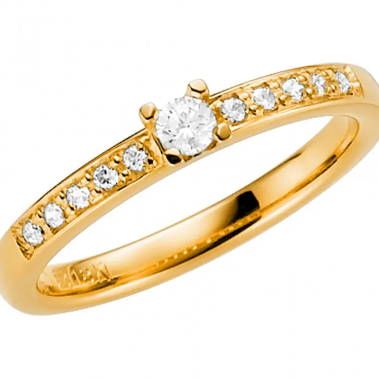 Guldring 14 karat med diamanter total carat 0,20 ct, Virvla från Schalins ringar. Gravyr ingår. 5-7 dagars leveranstid.