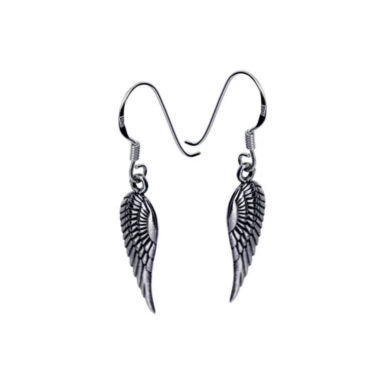 Hängande silverörhängen på krokar med änglavingar i äkta silver 925.