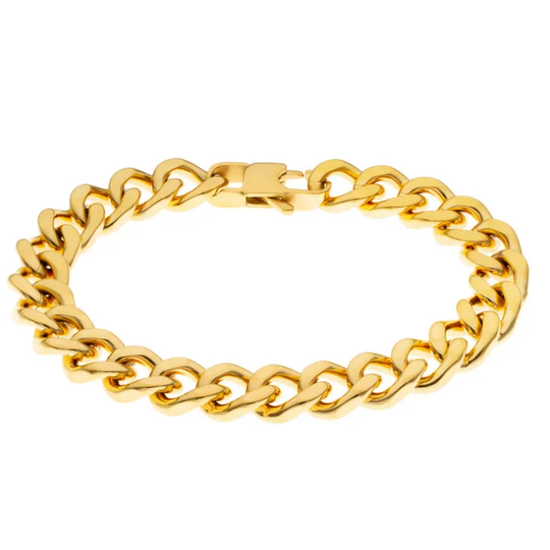 Armband Leo, klassiskt pansararmband curb i blankt guldpläterat stål. Bredd 10,3 mm.