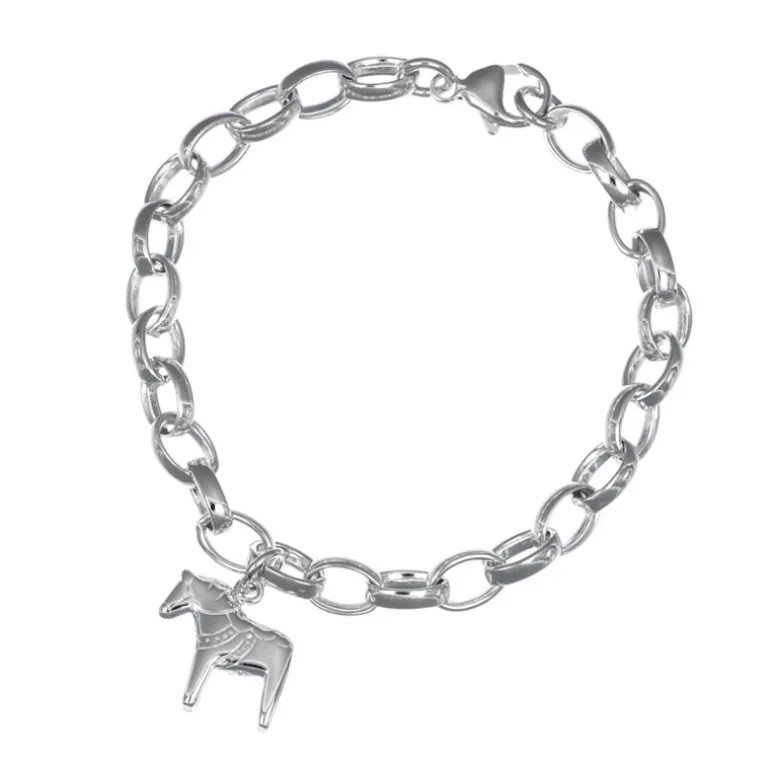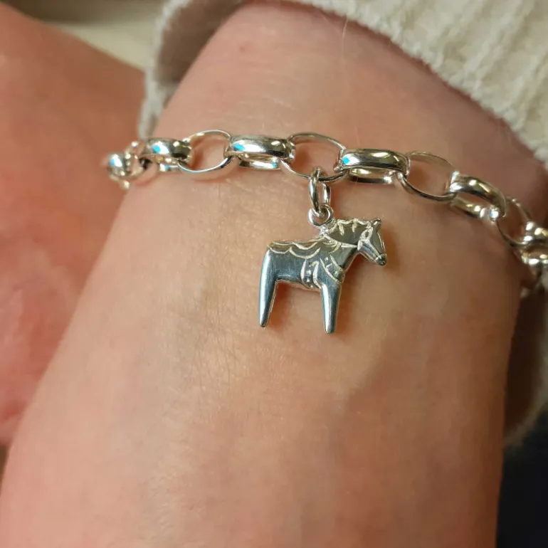 Lite grövre armlänk med ovala länkar och berlock med dalahäst, äkta silver 925.