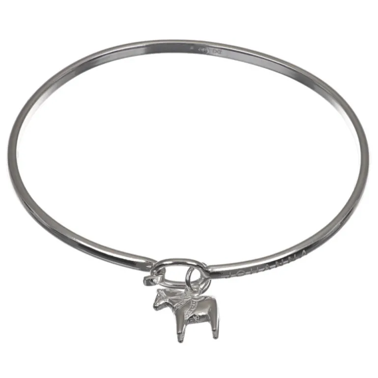 Snygg armring i äkta silver 925 med dekorativt lås och berlock med kurbitsmönstrad dalahäst.