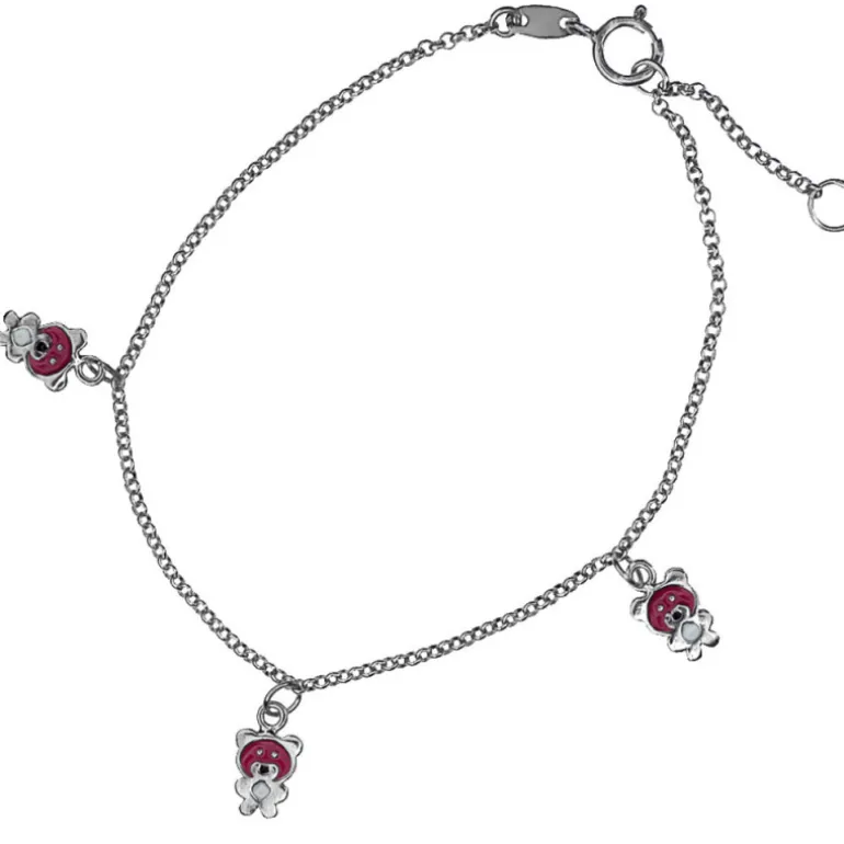 Barnarmband med nallar, dekorerade rosa, material på armbandet äkta silver.