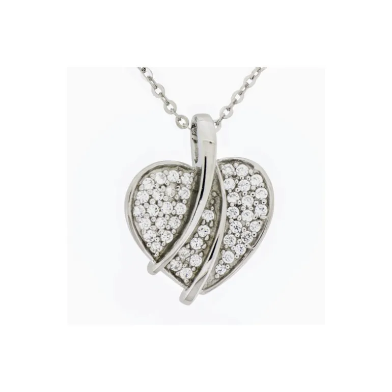 Halsband med glittrigt hjärta i äkta silver 925.