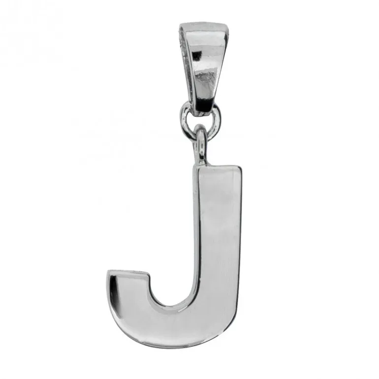 Berlock med stor bokstav J i äkta silver 925, höjd inklusive ögla 23 mm.