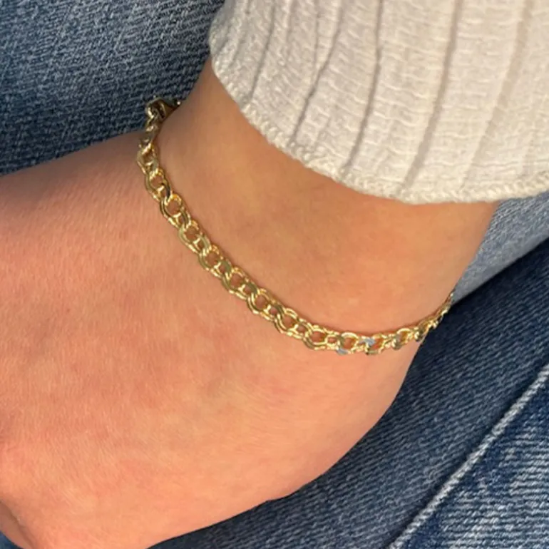 Bismarckarmband, armband modell bismarck i guldförgyllt äkta silver. Längd 18 cm. Bredd 5,4 mm. Tänk på att ta av förgyllda smycken när ni sportar, duschar och badar så håller de sig fina längre.