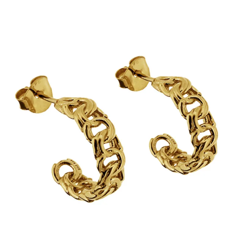 Bismarckörhängen, guldförgyllda örhängen creoler med klassisk bismarcklänk som ringar på stift som örhängen. Länken bismarck är tillverkad av dubbla ringar som är vridna åt olika håll.