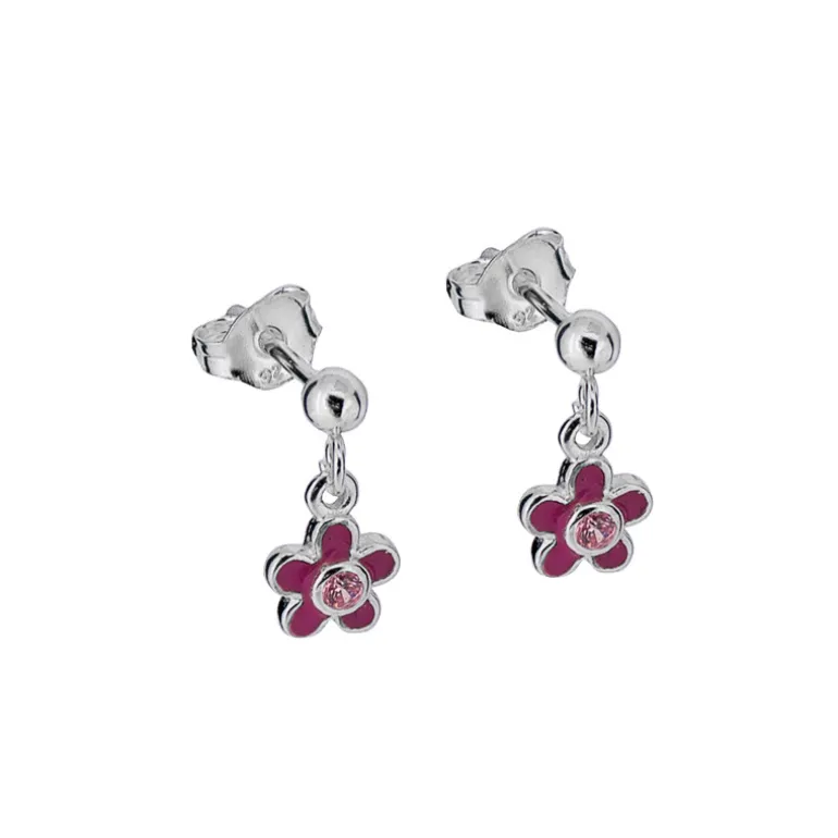 Hängande silverörhängen med rosa blommor i äkta silver 925.