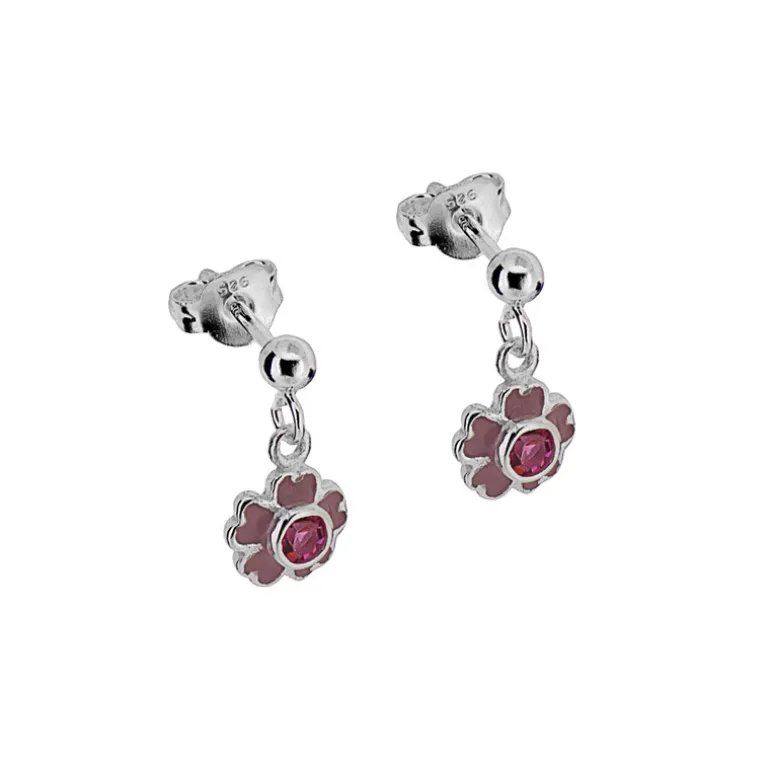 Hängande silveröhängen med rosa blommor i äkta silver 925.