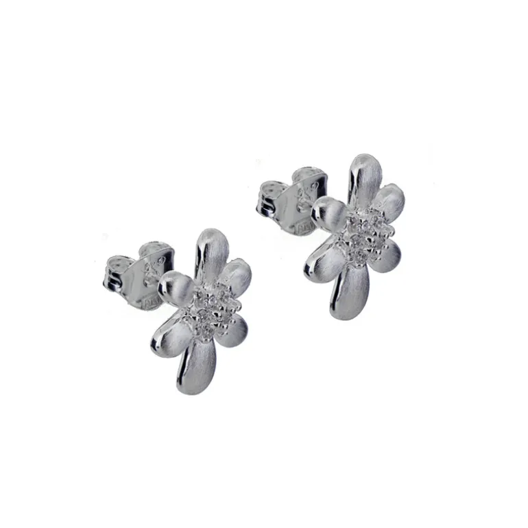 Örhängen med blomma och vita stenar i äkta silver 925.
