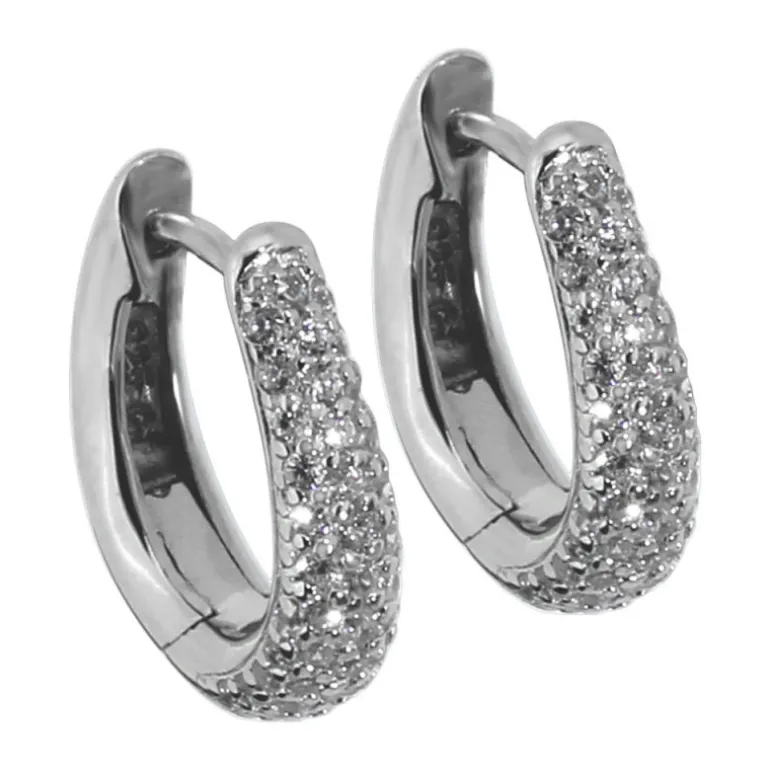 Bobbie, creoler hoops i snygg oval form med många små vita gnistrande stenar, material äkta silver 925.