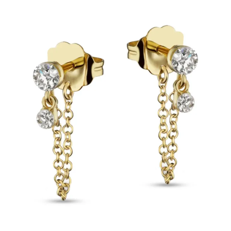 Chain, snygga silverörhängen med två glittrande stenar längst upp och kedjor som går ner runt och fästs bakom örhänget. Material guldförgyllt äkta silver. Längd på örhängena 36 mm. Tänk på att ta av förgyllda smycken när ni sportar, duschar och badar så håller de sig fina längre.