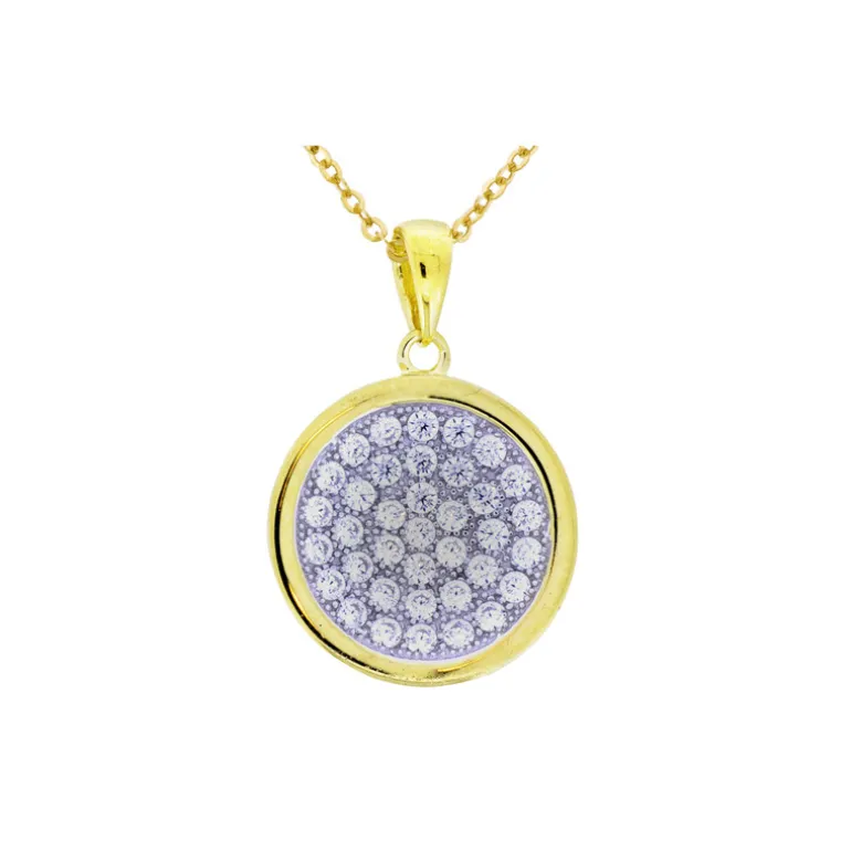 Halsband med glittrande stenar på runt smycke, guldförgyllt äkta silver.
