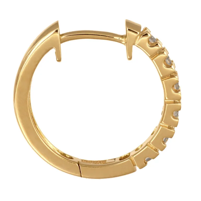 Creoler, hoops örringar huggies i äkta guld 18 karat med diamanter. Sex diamanter på varje ring, totalt 0,12 carat, kvalité W/SI. Ytterdiameter 15 mm, bredd 2,2 mm. Diamantörhängen ringar i vanligt guld.