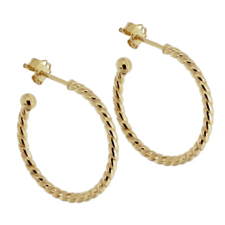 Creoler, guldörhängen hoops med snyggt vridet mönster. Ringar som örhängen i äkta guld 18 karat. Ytterdiameter 23 mm, bredd 2 mm.
