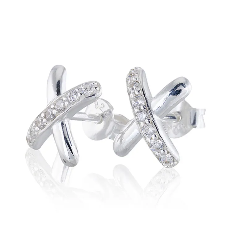 Cross my heart, örhängen från Carolina Gynning i äkta silver och vita gnistrande stenar, cubik zirkoner. Storlek 8 x 10 mm.