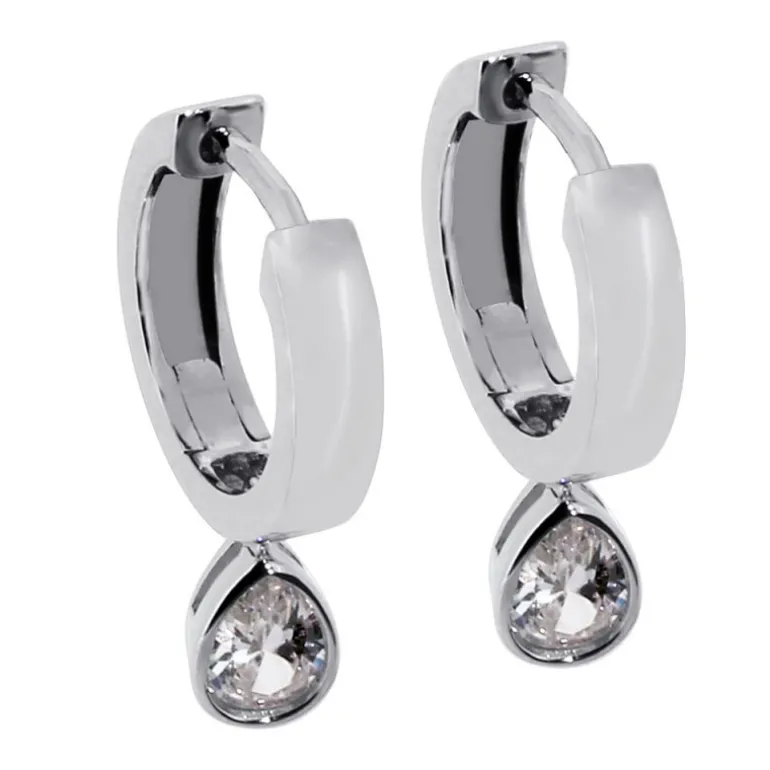 Dakota, hoops creoler med droppformad glittrig sten nertill, material äkta silver 925.