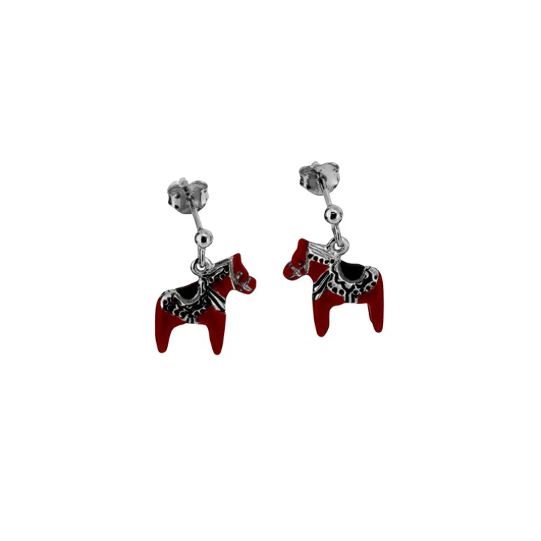 Hängande örhängen med röda dalahästar.