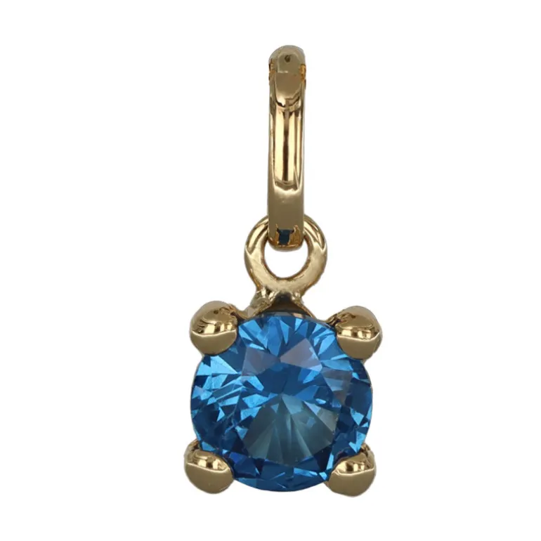 Månadssten smycke för månad december äkta guld 18 karat. Storlek på stenen 5 mm i diameter, höjd på smycket inklusive ögla 11 mm. Färgad syntetisk sten liknande turkos.