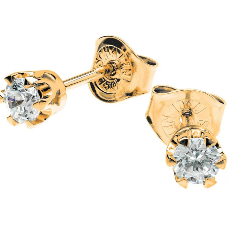 Örhängen med diamanter, briljanter 2 x 0,15 ct, i klassisk fattning med sex klor rödguld 18 karat.