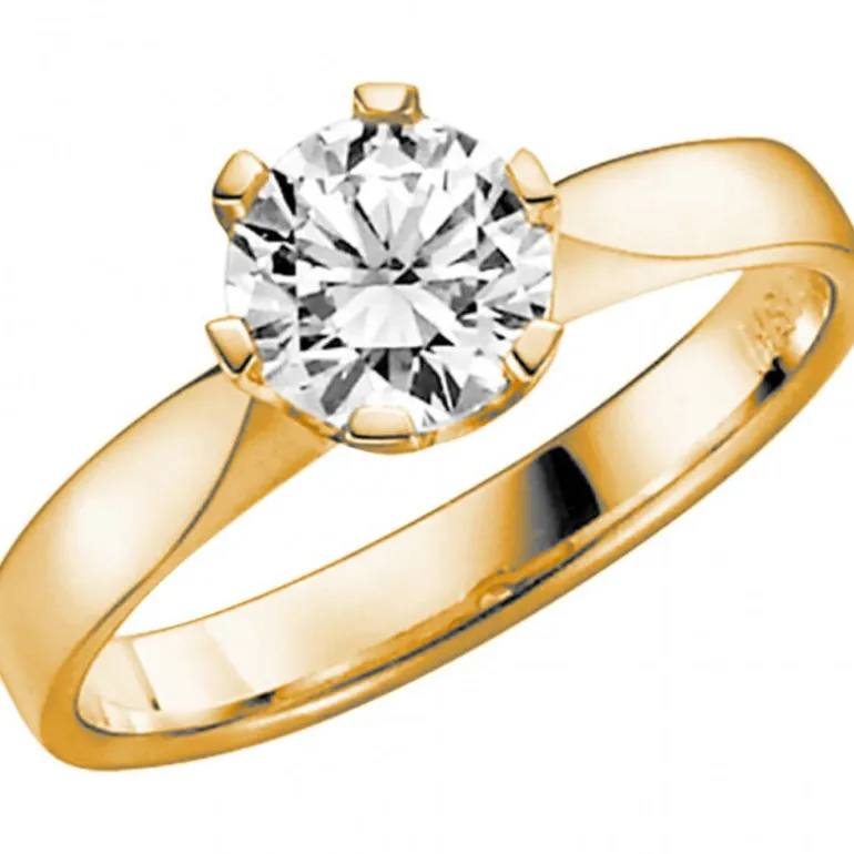 Donau förlovningsring eller vigselring, solitär diamantring med en briljant. Guldring 18 karat med enkaratare, diamant 1,0 ct från Schalins ringar. Gravyr ingår. 5-7 dagars leveranstid.