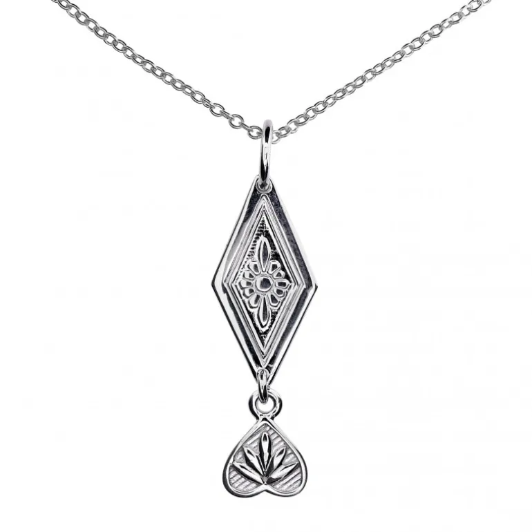 Smycke i äkta silver med litet kläppe med hjärta nertill, kedja ingår.