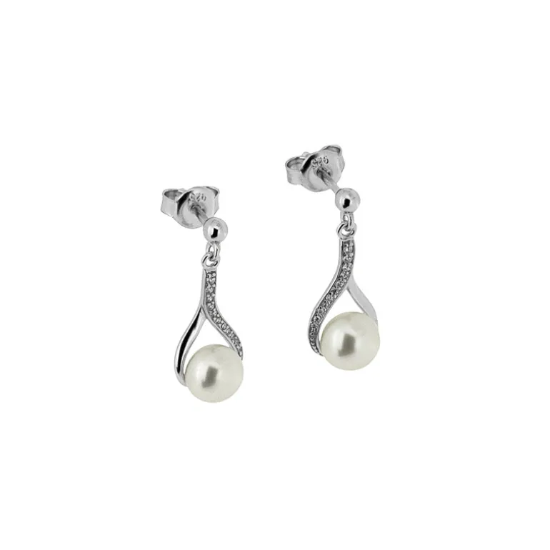Hängande örhängen med vita pärlor i äkta silver 925.