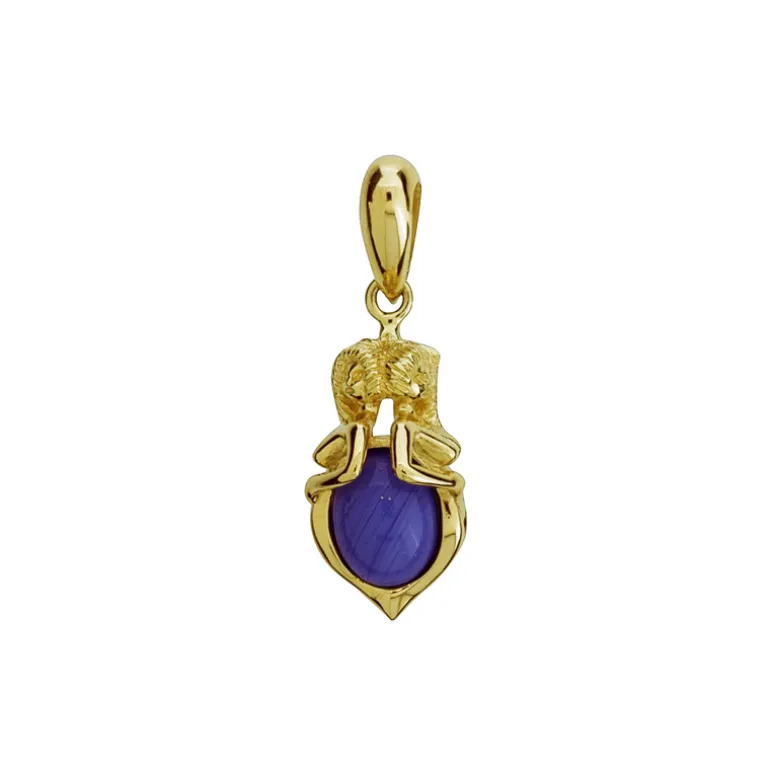 Emmahänge från Zorn Jewellery i äkta guld 18 karat med kvinnokroppar sett från sidan på smycket och i mitten en blå bergslagssten 7*9mm ,höjd på smycket inklusive ögla 30mm.