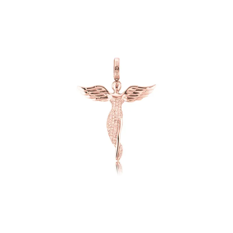 Engelsrufer ängel roséförgyllt silver längd 52mm, änglar i rosé med gnistrande vita stenar cubik zirkoner.